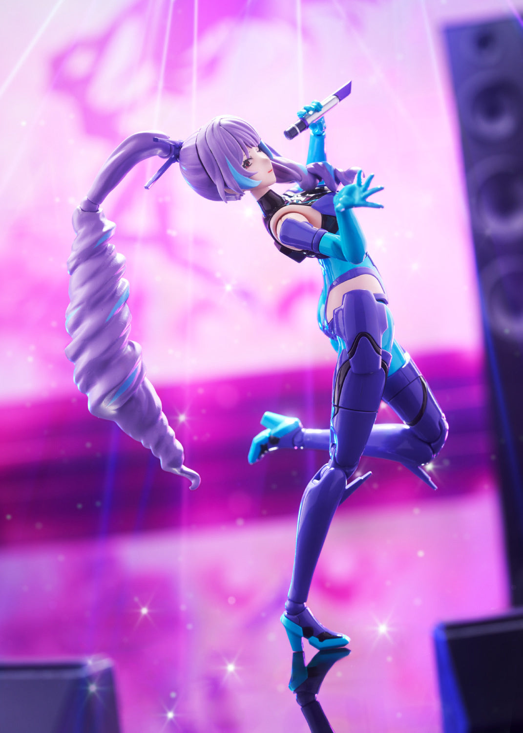 Die Variable Fighter Girls: Macross Delta Walküre – MC-17 – Mikumo Guynemer von Aoshima bringt die geheimnisvolle Venus der Walküre-Einheit direkt in deine Sammlung! Diese detailreiche Figur ist perfekt abgestimmt auf den VF-31J Siegfried im Originalfarbschema und kommt mit Multi-Drohne (als Stand nutzbar), zusammenklappbaren Lautsprechern und Mikrofon.
